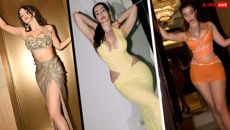 In this picture, she is seen wearing a gorgeous mini skirt and crop top. She is looking very stylish with this glamorous look.