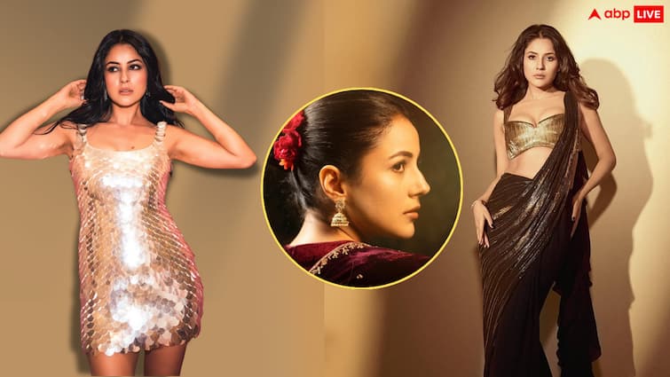 In this traditional outfit, Shahnaz’s royal and elegant avatar is seen. Floral Juda and heavy ethnic dress has made her desi look even more special. In this style, she is seen spreading royal beauty.