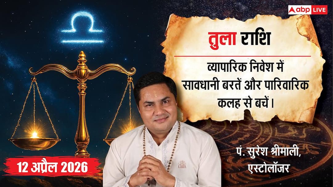 Today’s Libra Horoscope 12 April 2026: Sunday is the tenth day of Krishna Paksha of Vaishakh month. Shravan Nakshatra will remain till 03:14 pm, after which Dhanishtha Nakshatra will start. Today the Moon is transiting in the 4th house (fourth house) from your zodiac sign. The fourth house is the place of happiness, but the unfavorable position of the Moon here indicates mental unrest and family problems. The position of the planets is somewhat challenging today, so do not be hasty in taking important decisions. Rahukaal will remain from 04:30 to 06:00 pm, during this period do not do any auspicious work or new investment at all.