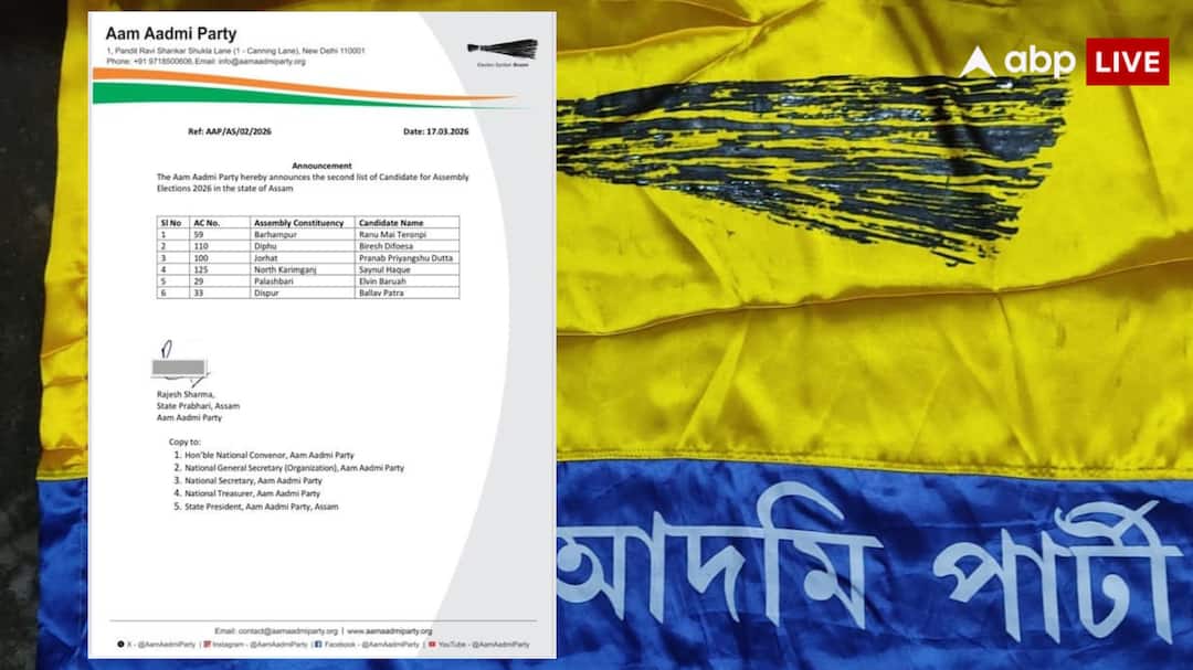 Aam Aadmi Party (AAP) has released its second list for Assam Assembly elections 2026. The party has announced the names of a total of 6 new candidates, including the high-profile Dispur seat in Guwahati.
