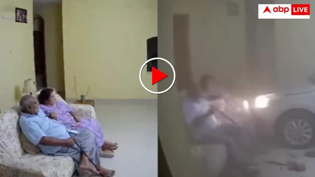 It can be clearly seen in the video that the elderly couple is laughing and talking while watching TV. Then suddenly the wall of their house breaks and a speeding car enters inside. The collision of the car is so strong that within a few seconds the entire room is filled with dust and debris. A car passes right in front of the sofa, but luckily both the elderly people are saved by a few inches from it. Immediately after the accident, both of them stand up from their places and start looking around in surprise.
