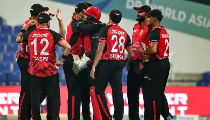 Bangladesh started with some attractive shots of Parvez Hussain Imon, but he was caught out by Ayush Shukla. Tanjid Hasan also could not last long. However, Hong Kong’s 11 additional run mistake brought Bangladesh to 51/2 in power-play.