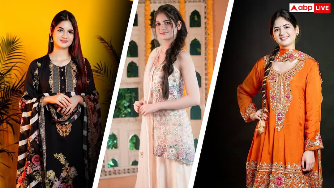 This simple style of Harshali is making her even more special. He is wearing a white and blue combination suit. Also, she is looking very beautiful with natural beauty and open hair.