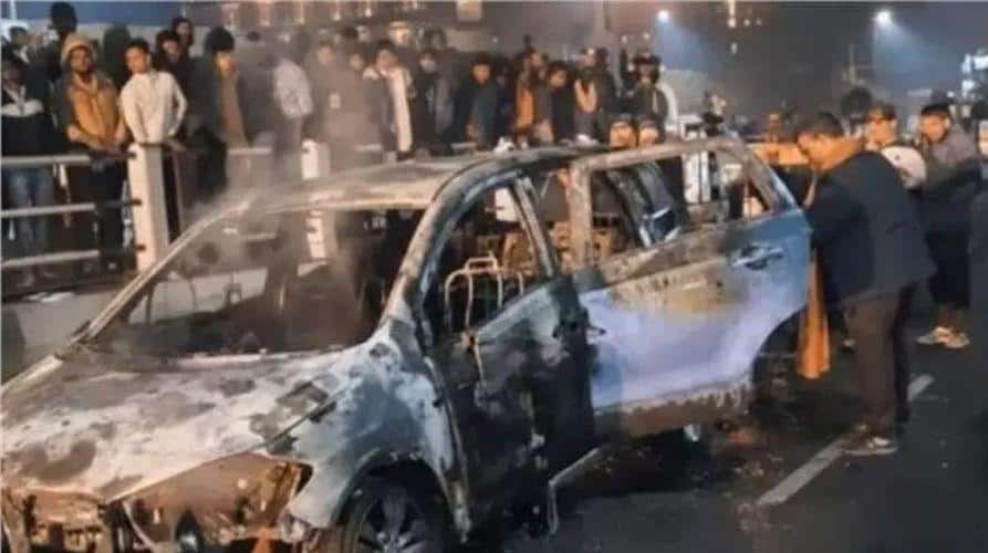 As soon as the information was received, police and fire brigade teams reached the spot. The firefighters controlled the fire after a lot of effort, but by then the car was completely burnt. The burnt car was taken out with the help of a crane and sent to the police station.