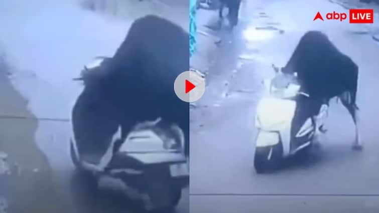 Every day something surprising is seen on social media, but this time the view that was captured in the camera is blowing the senses of the people and bringing a lot of laughter. In the video, a stray bull took a scooty standing on the road as if he had a personal vehicle. People looked with eyes and then showed the world with CCTV and mobile. Now this video is creating a ruckus on the internet.