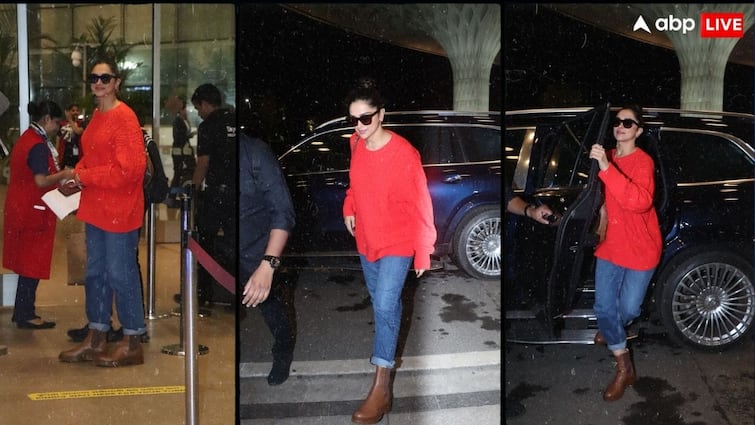 Deepika Padukone’s cool avatar shown at the airport, perfect look in red sweatshirt, photos viral