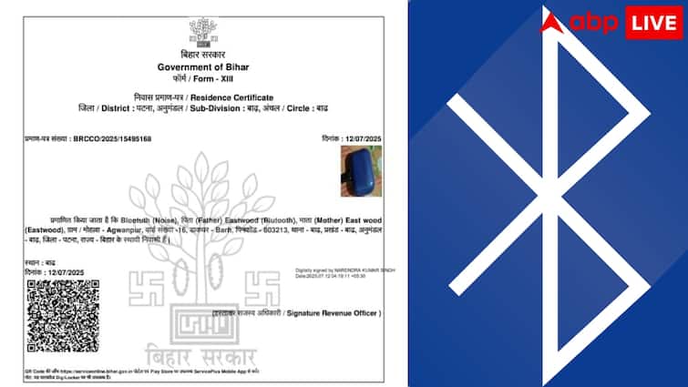 The act of officials of the flood zone office of Bihar is not limited to the name Bluetooth. The officials have also given a new name to Bluetooth’s parents. In the residential certificate, Bluetooth’s father and mother was named Eastwood. Not only this, the photo issued on the certificate is also of Bluetooth device. Users are raging on this fake evidence that is going viral on social media and is abusing the careless officers by drinking water.
