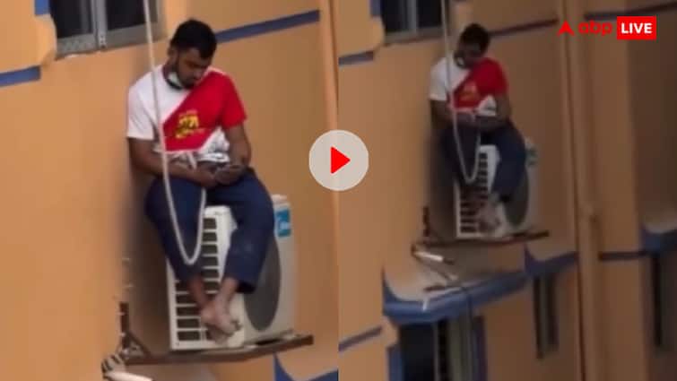 It is said that humans do not live on the ground in love, but this man has done the limit. A video is going viral on social media, which people are surprised to see and laugh and laugh. In this, a young man is sitting on the AC machine on the outer wall of the high building, running a mobile comfortably and that too should be a bench of a park. But the story does not end here. It is being told that sir was chatting with his girlfriend. Now people are saying, “If brother is in love, it should happen or else the government also makes claims. You will also open the box of your chair.