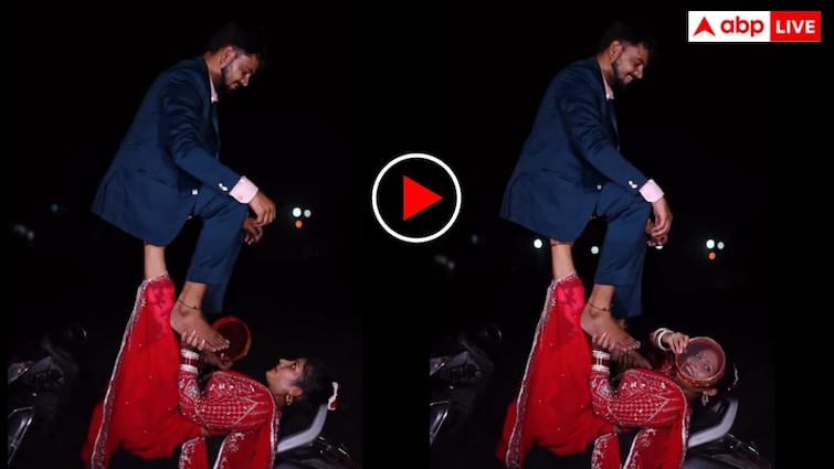 There is a funny twist hidden in this because her husband is sitting at the woman’s feet, whom the woman has saved from falling from her feet. In this strange pose, the woman is seen looking at her husband through a sieve on the night of Karva Chauth. After watching the video, people are so stunned that they have no words left. Many people have also expressed their anger after watching the clip. Apart from this, another video is viral on the internet in which the couple is seen doing a similar act.