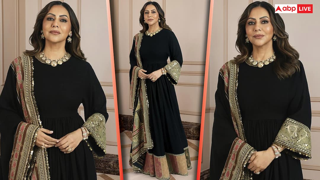 Shahrukh Khan’s wife Gauri Khan also dominates social media regarding style and fashion. Even though she is not a popular Bollywood actress, her style is no less than anyone in this matter. In this event organized in Qatar, she wore a black colored Anarkali suit. There is a design in its border which enhances the beauty of the entire outfit. Along with this, she completed her look with statement accessories. This look of Gauri Khan with smokey eye makeup and open hair looks elegant as well as classy.