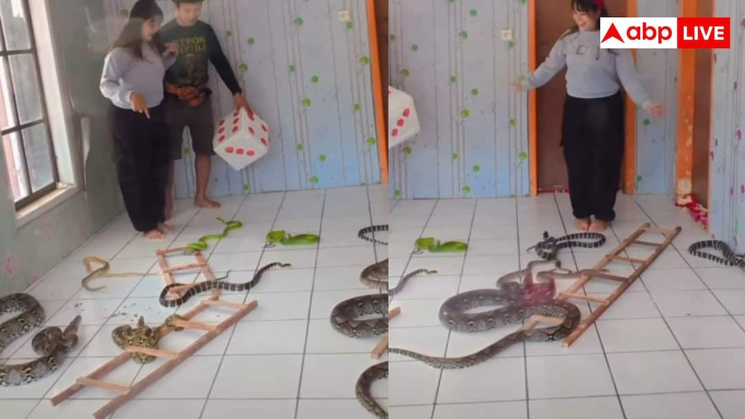 This game of Snakes and Ladders is going viral on the social media platform Instagram through an account named @_shilpi_rahila. Where in this clip it is seen that a girl and a boy are standing among snakes. Many different types of snakes are seen all around the room. The common man will get scared just by seeing them. Apart from this, stairs have been placed near the girl and the entire scene has been made like a snake and ladder game. Then it is seen in the video that the girl throws the dice for this game and takes as many steps as she gets. The girl is seen moving among the snakes without any fear. Some snakes pass very close to her, but she does not get scared, this style is surprising people.