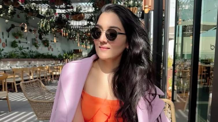 This modern look of Tina Ahuja in an embroidered jacket style dress looks quite attractive. Open hair and nude makeup further highlight their confident personality. This picture shows his Western fashion sense well.