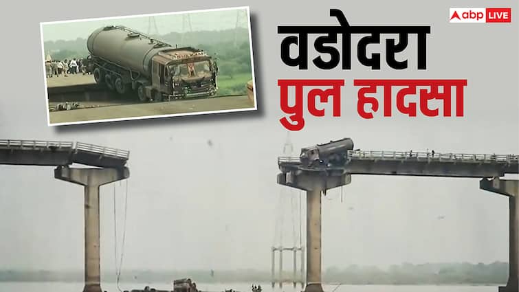 Many vehicles fell into the river due to the collapse of Gambhira bridge in Vadodara district of Gujarat. 9 people died in the accident. The video after this accident is viral. It can be seen that the entire slab between the two pillars of the bridge has collapsed.