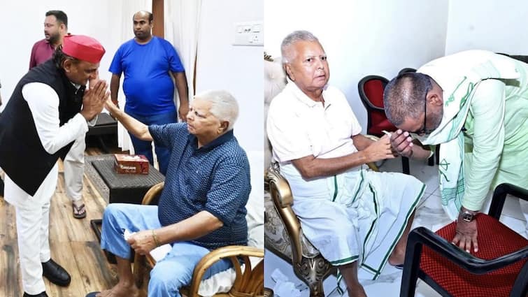 On this occasion, many leaders went to meet the RJD supremo. Lalu Yadav has shared two pictures from his X handle. In one picture, Akhilesh Yadav is taking blessings from Lalu with folded hands, in the second photo, Jharkhand Chief Minister Hemant Soren is seen taking blessings by touching his feet. RJD supremo wrote for both leaders,