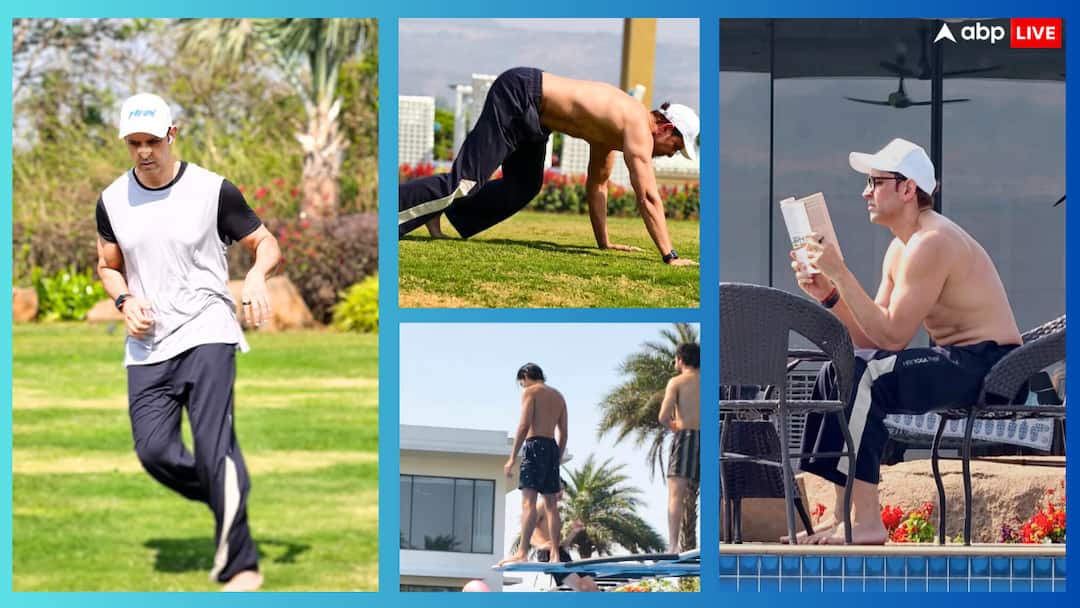 Hrithik Roshan has shared pictures of himself and his sons Rehaan and Hridhaan on his Instagram. In the first photo, the actor is seen running barefoot on the grass wearing a T-shirt, trousers and a hat on his head.
