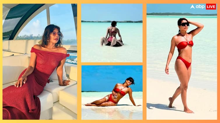 Priyanka Chopra has shared beautiful pictures and clips from Bahamas Vacation on Instagram. In the first picture, she is seen posing in red dress.