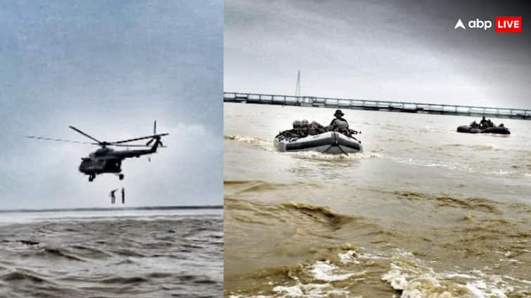 The Trishakti Corps of the Indian Army located in Sukhna (Siliguri) in North Bengal carried out a big exercise at Farakka Barrage in Murshidabad. Air Force Mi-17 V5 helicopter participated in this exercise. When the helicopter flew from a very low height, the Army, Air Force and Disaster Management Force personnel demonstrated their strength and agility on the waves of Ganga in Farakka Barrage.