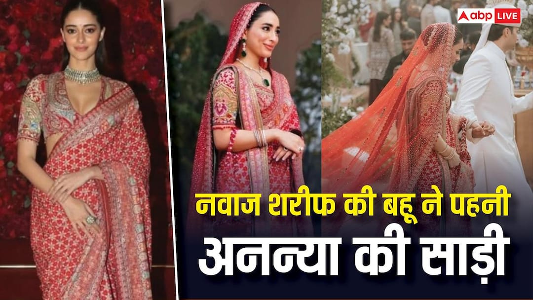 Junaid Safdar, son of Pakistani politician Maryam Nawaz and grandson of former Prime Minister of Pakistan Nawaz Sharif, has got married royally to Shanze Ali Rohail. The bride’s outfit is being discussed a lot on the internet not only in Pakistan but also in India. The reason for this is that Junaid Safdar’s wife wore a saree of an Indian designer instead of the designer of her country in her wedding. And this is the same saree that Bollywood actress Ananya Pandey wore in a function in the year 2025. At the same time, Pakistani people are taunting Nawaz Sharif’s daughter-in-law for copying the saree of a Bollywood actress.