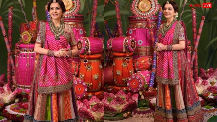 Let us know that Manav Mangalani has shared many pictures of Nita Ambani with her brilliant outfit on her Instagram page. In the pictures, Nita Ambani looks beautiful in colorful lehenga. He is wearing a Z’s lehenga and choli prepared by Monica and Karishma. The special thing is that in this lehenga of Nita Ambani, nine incarnations of Goddess Durga were celebrated, which were imagined as Navrang. It shows the nine colors woven in Rich Banarasi brocade.