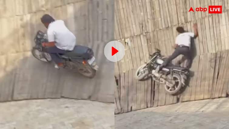As soon as the bike falls under the bike, the foot of the person also comes down rubbing the wooden wall. Seeing this view, anyone’s heartbeat will intensify. Everything stopped for a moment, as if death has tried to establish his claw. It was not fast of the bike, otherwise a big accident could be produced.