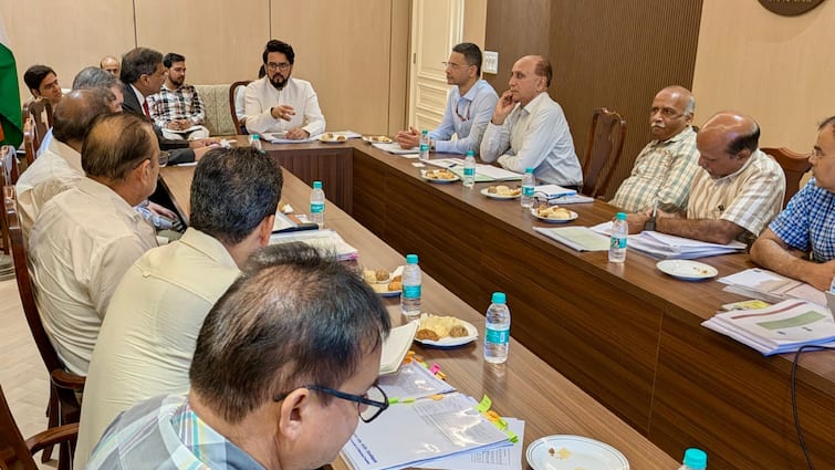 Former Union Minister and MP from Hamirpur Lok Sabha constituency Anurag Singh Thakur held a meeting with officials of the Central Public Works Department (CPWD) at his residence in Himachal on Tuesday at his residence in Delhi. During this, he reviewed about the progress of construction works and gave necessary instructions.