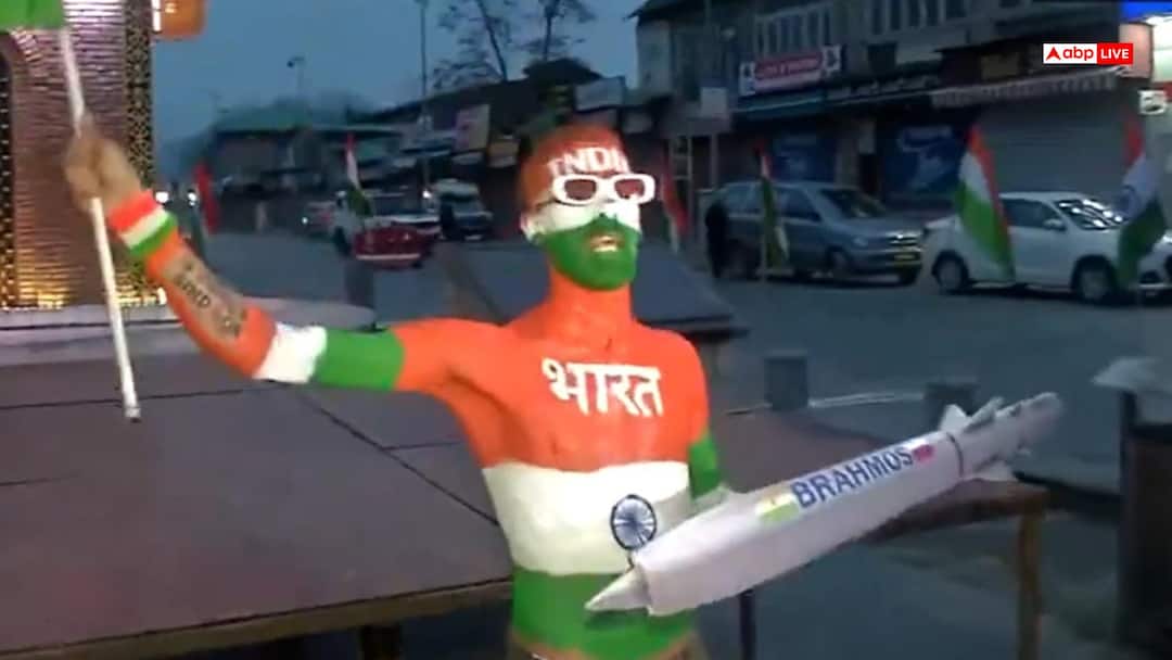 Tourist Arun had his entire body painted with the colors of the tricolor. He also had a small model of BrahMos missile in his hand and was raising slogans of “Bharat Mata ki Jai” while waving the national flag. The people present at Lal Chowk and the security forces also kept watching this scene for some time.
