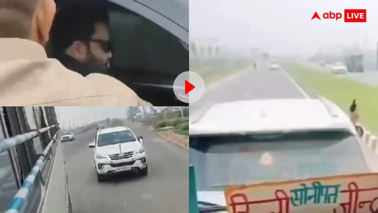 The video is being told of Haryana. It can be seen that a Fortuner vehicle is running in front of the roadways bus and is running on the middle road. The driver of the roadways indicates the horn and gives him a side, but the Fortuner not only gives the side, but also takes out the hand out of his car window and starts waving a pistol in the air. Like the road is his legacy and the rest of the people just showpieces.