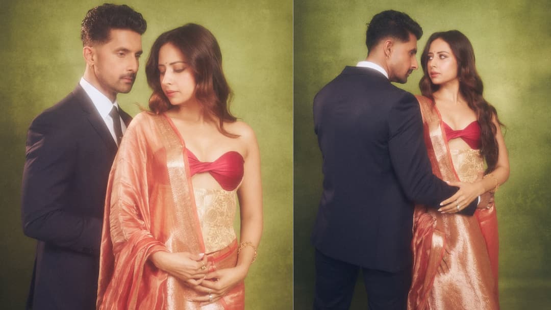 Sargun wore a golden and light orange tone saree, which looked very rich and classy. The fabric of the saree was shining, due to which her entire look looked royal and attractive.