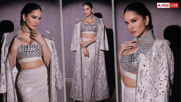 Sunny Leone has recently shared photos in silver and white outfits. In this, she is looking very stylish.