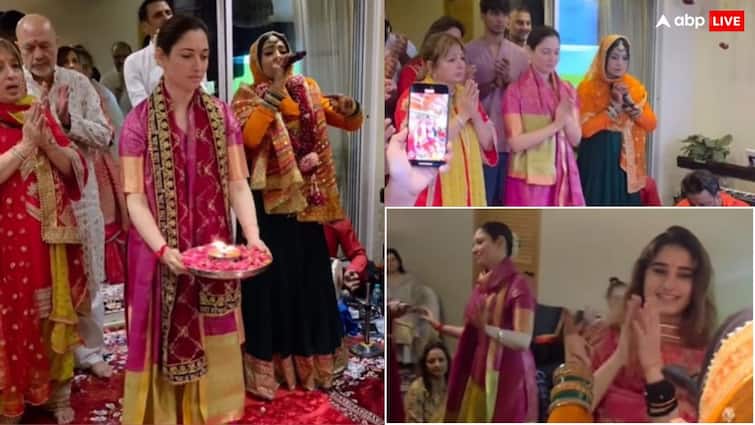 Mata ki chowki at tamannaah bhatia house: Actress Tamannaah Bhatia, who has made her acting in South and Bollywood, is seen immersed in mother’s devotion these days. Recently, the actress kept the mother’s post in her house. Apart from his family, special friend Rasha Thadani also attended. Its video is now becoming quite viral.