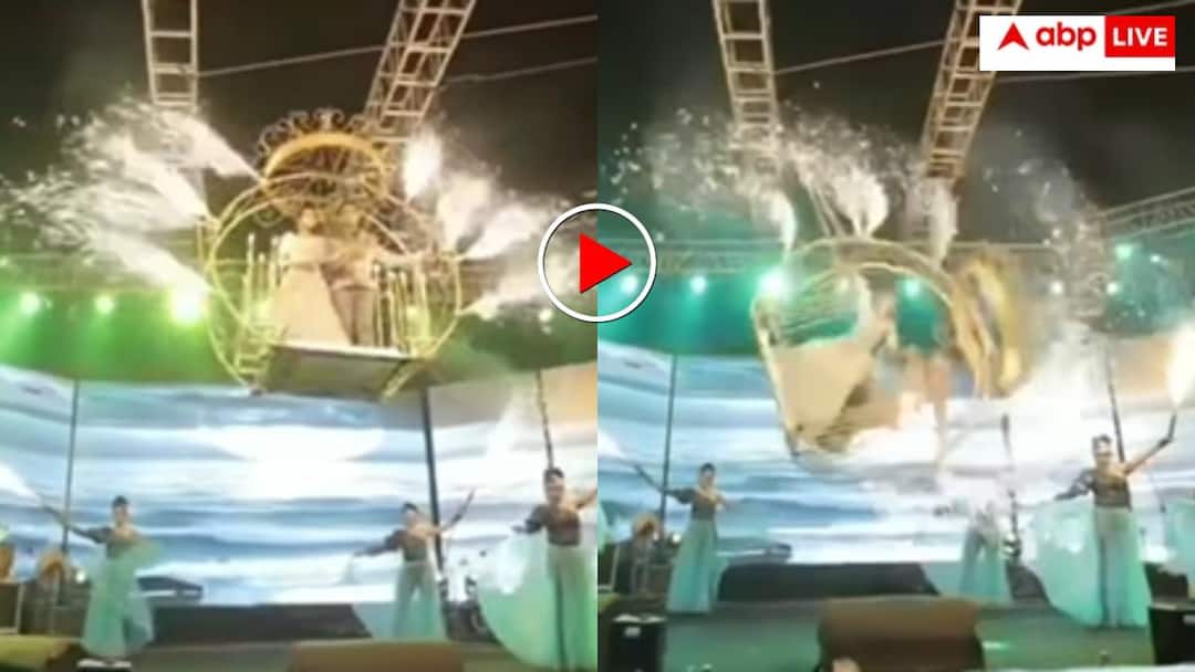In this video which is going viral, the bride and groom are seen moving towards the stage riding on a big and decorated swing. Loud music is playing in the background and smoke from ‘pyro’ (fireworks) is rising near the stage. As soon as the swing reaches just above the stage, one end of the rope or chain holding the swing breaks. Within seconds, the swing tilts to one side and goes out of control and falls to the ground along with the bride and groom.