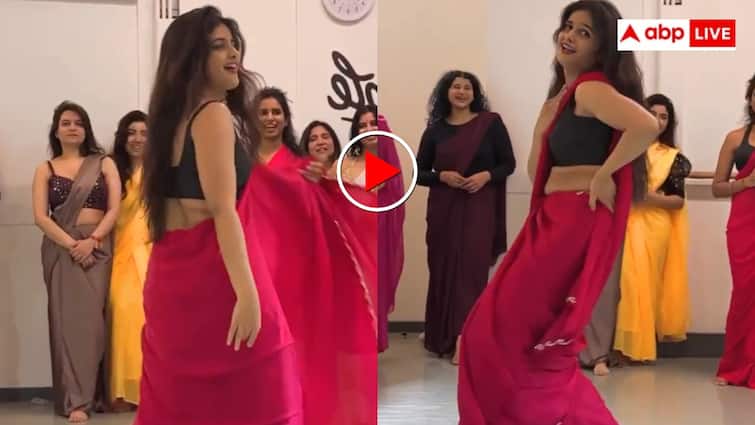 It can be seen in the video that the girl is wreaking havoc with her killer acts in pink color saree and black blouse. The rest of the girls standing around him are also seen smiling at his performance. As soon as the song begins, the girl performs dance steps while jerking her hair and in a few moments shines like lightning on the stage. His expressions are so deadly that many people are calling it the hottest and graceful dance ever.