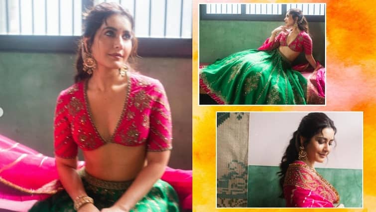 The perfect for Karva Chauth will be perfect, this green-pink lehenga look of Khanna, believe me everyone will call you the moon of fourteenth