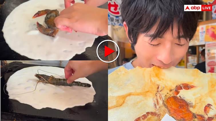 In the world of social media, such videos are revealed on the day of which people are stunned. Now a similar surprising video has come out from a restaurant in Japan where the way of making papad is so strange that everyone is watching it again and again. In this video, the whole crab is baked by pasting the entire crab directly with papad and it is eaten with great pleasure. Seeing this food culture of Japan, you will also be stunned for once. But for the people there, this is all daily work and people there eat it with great fervor.