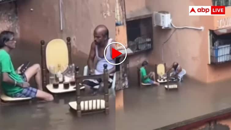 In a video going viral on social media, it can be seen that in a residential area where all four and multi -floor buildings are built, some people are sitting in their courtyard. The special thing is that this entire area is full of water, the table chair is all half submerged in the water, despite one uncle has cut a gathering with some of his friends.