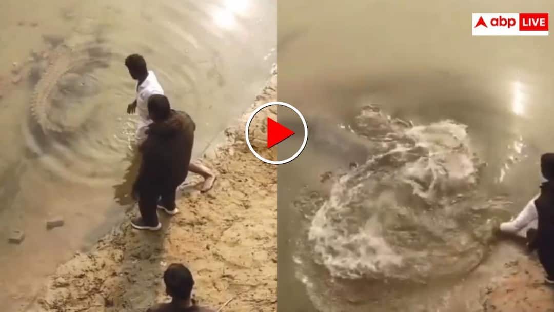 Usually crocodiles are aggressive and attack people, but here when the tail of the crocodile is pulled, the crocodile comes out of its zone and disappears from there as if nothing was there. Everyone is surprised to see this reaction of the crocodile. Now this video is becoming increasingly viral on social media, due to which internet users are giving different types of reactions.
