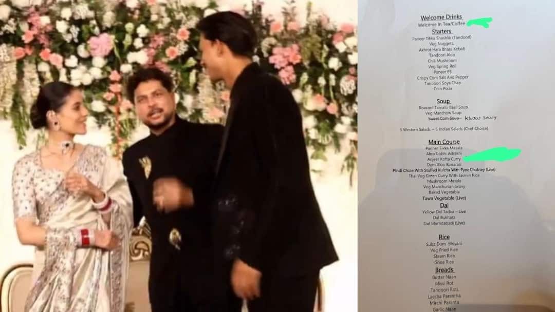 Pure vegetarian food was served at the wedding of Kuldeep Yadav and Vanshika. There was no mention of non-veg in the menu list. From tea and coffee to traditional dishes like Dal Moradabadi and modern dishes like Veg Manchurian were also included in the menu.
