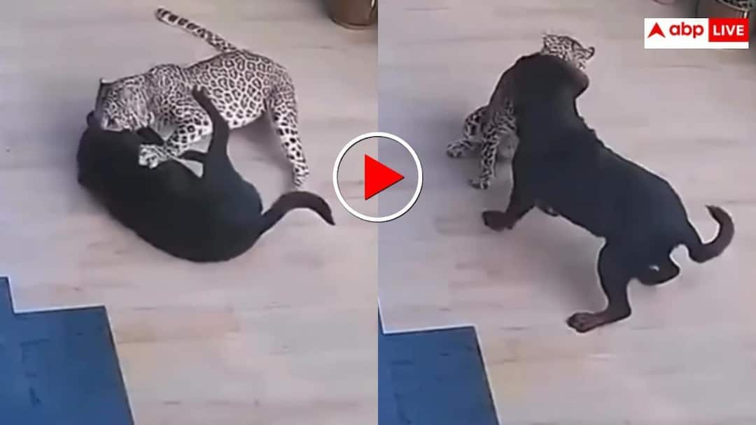 It can be clearly seen in the viral video that the leopard suddenly enters the house. The Rottweiler already present on the floor of the room becomes alert as soon as he sees her. Within a few moments the leopard pounces on the Rottweiler and a fierce fight begins between the two. The leopard attacks with its swiftness and sharp claws. Whereas the Rottweiler is seen fighting with full force. Both try to suppress each other by throwing them on the ground. This war looks no less than a film scene. In the next part of the video it is clearly seen that the Rottweiler is not ready to accept defeat. The leopard dominates for some time, but the Rottweiler’s grip and courage eventually pay off. The Rottweiler pushes the leopard back and does not give it a chance to recover.
