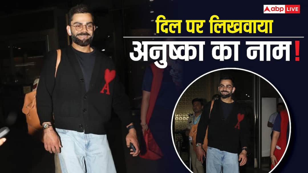 Let us tell you that Virat Kohli had reached Mumbai before the upcoming ODI series against New Zealand and during this the cricketer gave a sweet smile for the cameras while going towards his car. While the fans are eager to see him play on the field in the series starting from January 11, everyone’s eyes were fixed on his outfit at the airport. Actually, Kohli had come out of Mumbai airport wearing a smart black cardigan, matching black T-shirt and jeans. During this, everyone’s attention went to the heart made on her cardigan on which a red colored ‘A’ was written. Which led to speculations that it was his love for his actress wife Anushka Sharma.
