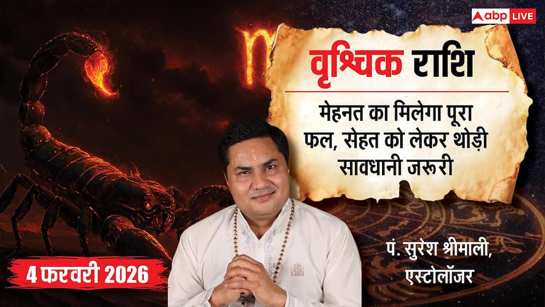 Vrishchik Rashifal 4 February 2026 in Hindi: For Scorpio people, today is a day to strike a balance between action and caution. Due to the Moon being in the tenth house (Karma Bhava), there will be hustle and bustle in your workplace, but the eclipse defect of Moon-Ketu can also present some mental challenges.