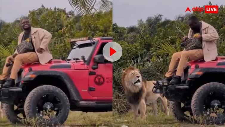The video of a jungle safari is going viral on social media these days. In the video, some friends go out to roam the forest in an open jeep, there is an atmosphere of cold air, laughter and fun. One of them is sitting on the bonnet in front of the jeep while demonstrating his bravery or negligence. Everyone else is inside the jeep, gossiping, no one is focused on the surrounding antics. But the next moment something happens that causes sudden silence in the video. A real lion, yes, the king of the forest, slowly stands directly in front of the jeep.