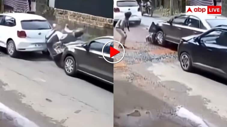 Actually, in the video going viral on social media, it is shown that a person is coming with a scooter behind the car on the road. Due to the front car pit, the speed slows down, so a high speed car comes from the back and hit the scooter, after which the poor scooter with a scooter becomes a sandwich between two cars. The most surprising thing in this scary view is that as soon as the scooter stuck between two cars, he suddenly jumps out and makes himself stand on the road. Seeing this, Yamraj’s week of was a week off and somehow this person beat death.