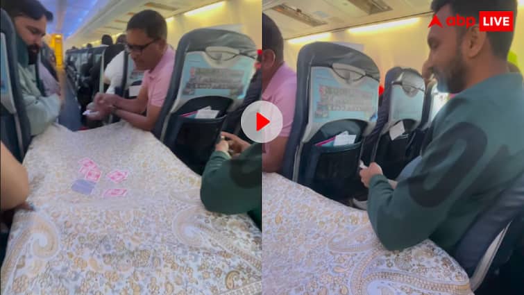 The card game was usually seen at roofs, chaupals, railway stations or bus bases. But now some people have collected their cards on the “height of the sky” too! Yes, a surprising video is going viral on social media in which some people are sitting inside the plane, but peacefully not in their seats, but in the middle of the plane from the place where the passengers come and go, they are playing cards. Seeing this view, the blood of the people has been boiled, because some people have made a joking ground as even a serious place like flight.